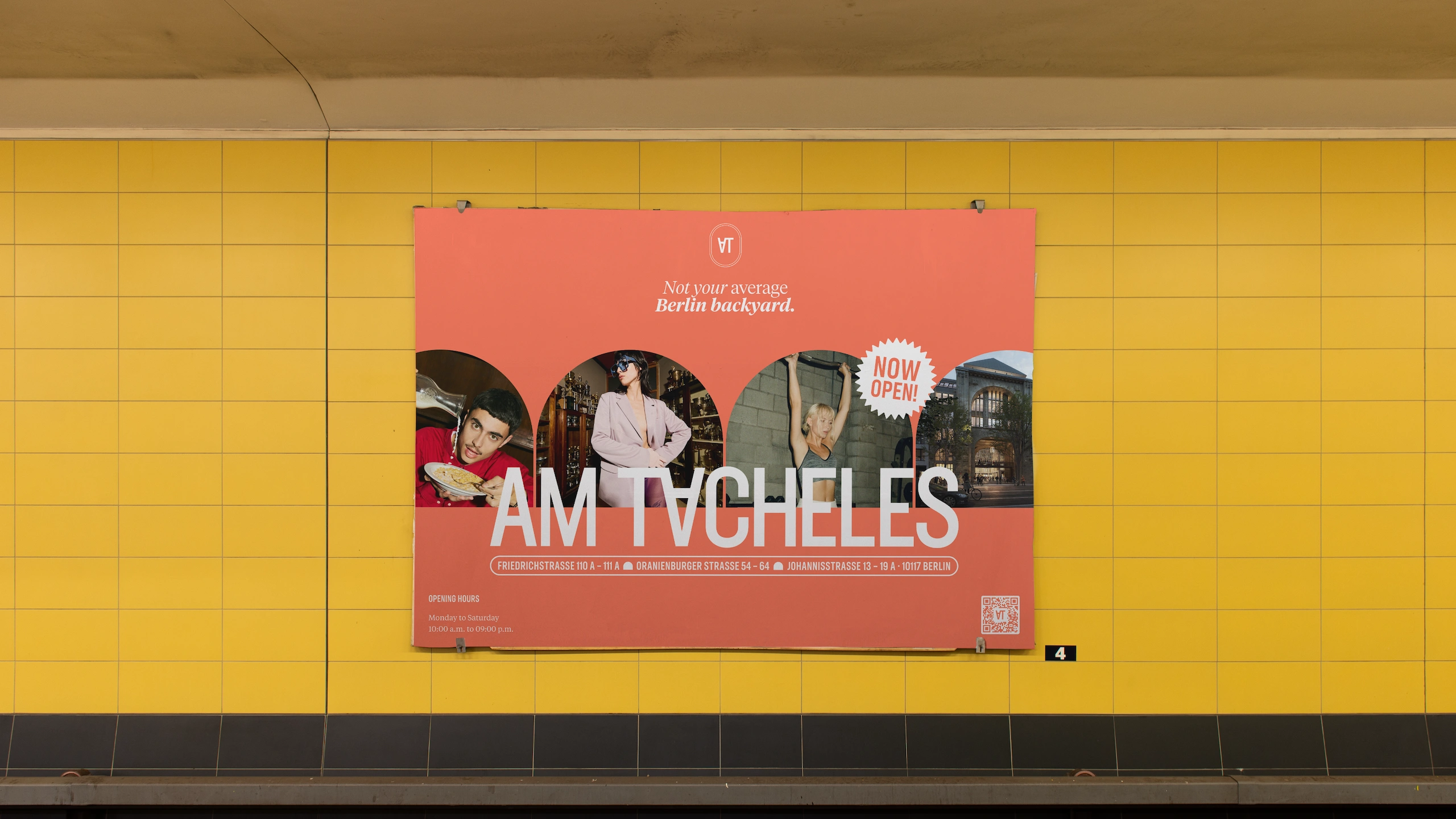AM TACHELES ist ein Remix: aus Kultur und Lifestyle, aus Erbe und Experiment, aus Substanz, Stil und dem Mut, Dinge neu zu denken. Das zeigt sich in einer lebendigen Bildwelt und einem Claim als gelebtes Understatement: Not your average Berlin backyard.
